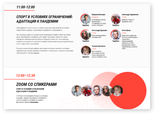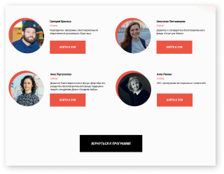 На странице программы конеференции происходит основная навигация по порталу 6 и 7 апреля. Для вашего удобства можно переключаться между днями на одной странице. Во время трансляции у активной программы появляется надпись «сейчас в эфире» и кнопка перехода к странице трансляции.